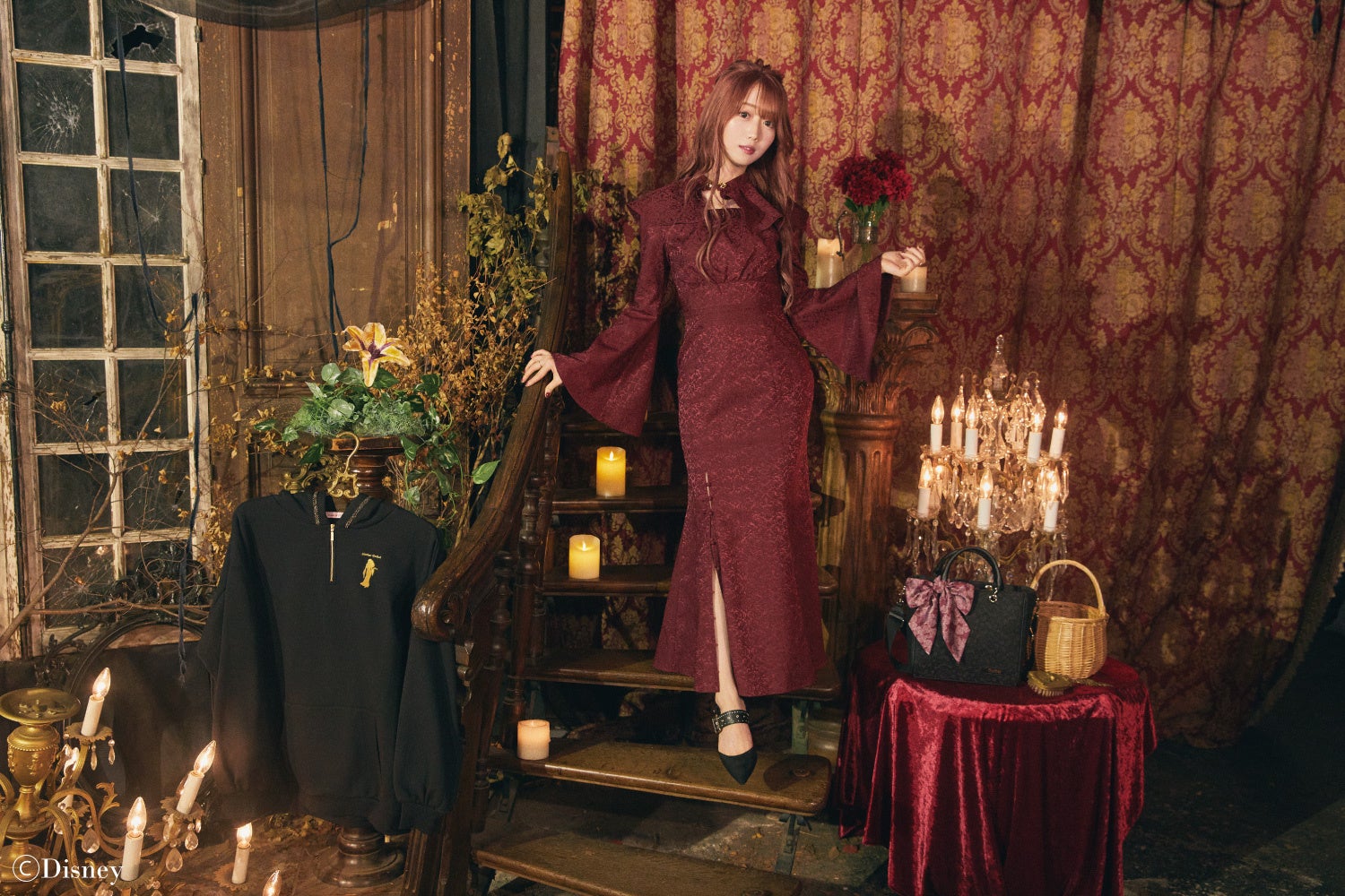 アイテムは、キャラクターごとにワンピースとスウェットのアパレルアイテムと、バッグと小物雑貨の4型を展開し、各作品のエッセンスを落とし込んでいます。ワンピースは、ケープやシースルー、ジャカードなどのトレンド要素もプラスしたアイテムや、りんごや蛸足、鍵など作品を連想させるモチーフをディティール使いしたものなど、それぞれにこだわりが沢山詰まっています。
