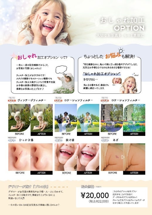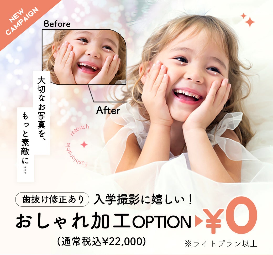 【3月限定】写真をより可愛く、かつアクシデントにも対応できる「おしゃれ加工オプション」が入学・卒園写真のキャンペーンにて無料