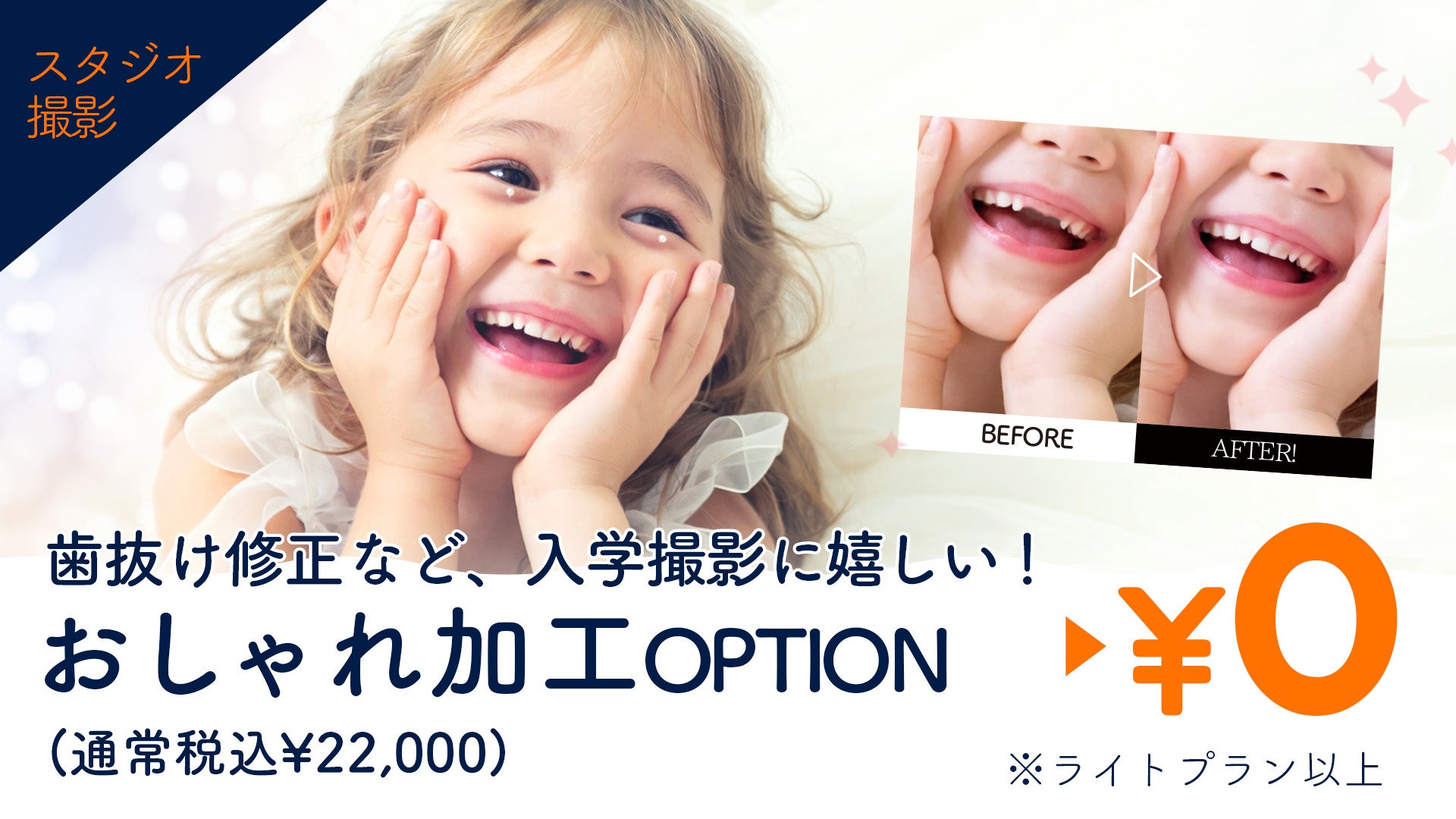 入学・卒園写真の撮影にて、3月限定で「おしゃれ加工オプション(通常税込¥22,000)」が無料に。