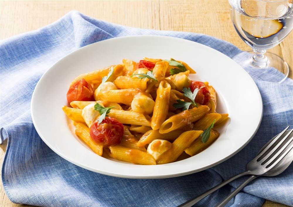 ミニトマトとモッツァレラチーズのトマトクリームペンネ