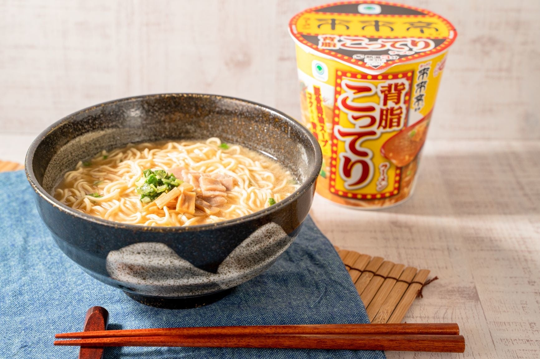 【内容】「来来亭」の人気メニュー「こってりラーメン」の味わいをイメージした商品です。豚骨ベースにガーリックなどの香辛料を効かせた豚骨醤油スープと、歯切れの良さと適度な硬さが特長の角刃の中細めんを合わせました。来来亭ならではの濃厚な味を再現するため、食べる直前に入れる別添の背脂パックを1袋付けています。