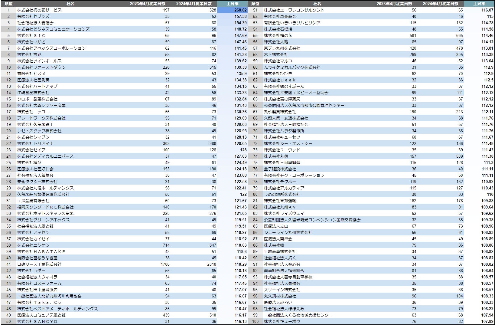 【久留米市】成長企業ランキングTOP100!/SalesNow DBレポート