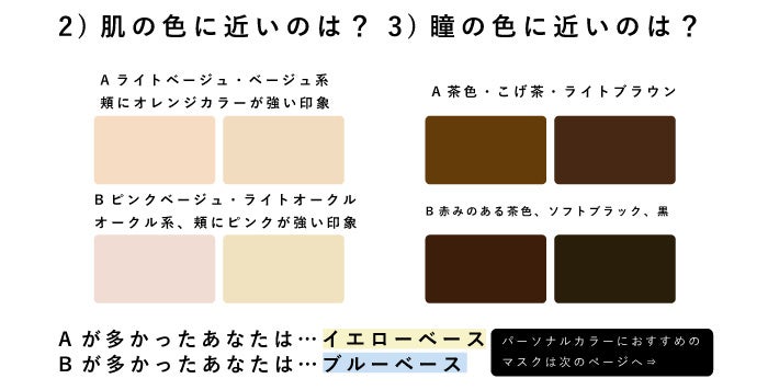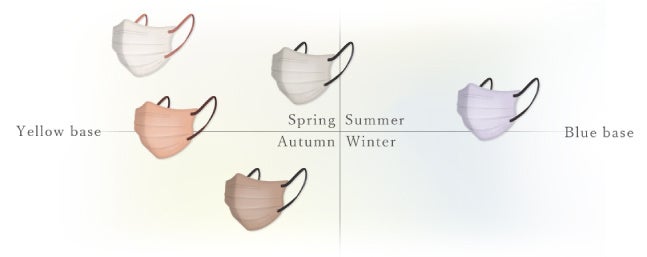 マスクは選ぶカラーによって相手に与える印象を変えることができます。自分の肌のパーソナルカラーに合わせて選んで頂くと、顔色が明るく見え、本来のお肌の魅力を惹きたてます。