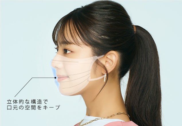 マスク生活のお悩みといえば呼吸やリップの付着。顔の形状に沿い、しっかりとフィットします。