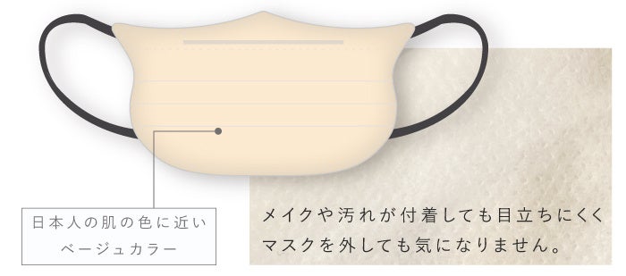 | ④汚れが目立ちにくい内側のベージュカラー 肌に触れる内側は、ベージュカラーの不織布を採用 メイクや汚れがついても目立ちにくい |