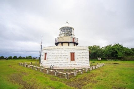 明治期、能登半島の最突端、珠洲市の禄剛崎に建てられた石造の灯台。レンズを固定させ、遮蔽板を回転させることで灯火を点滅させる珍しい手法を用いた。石材を人力で崖下から運ぶ難工事の末に完成。