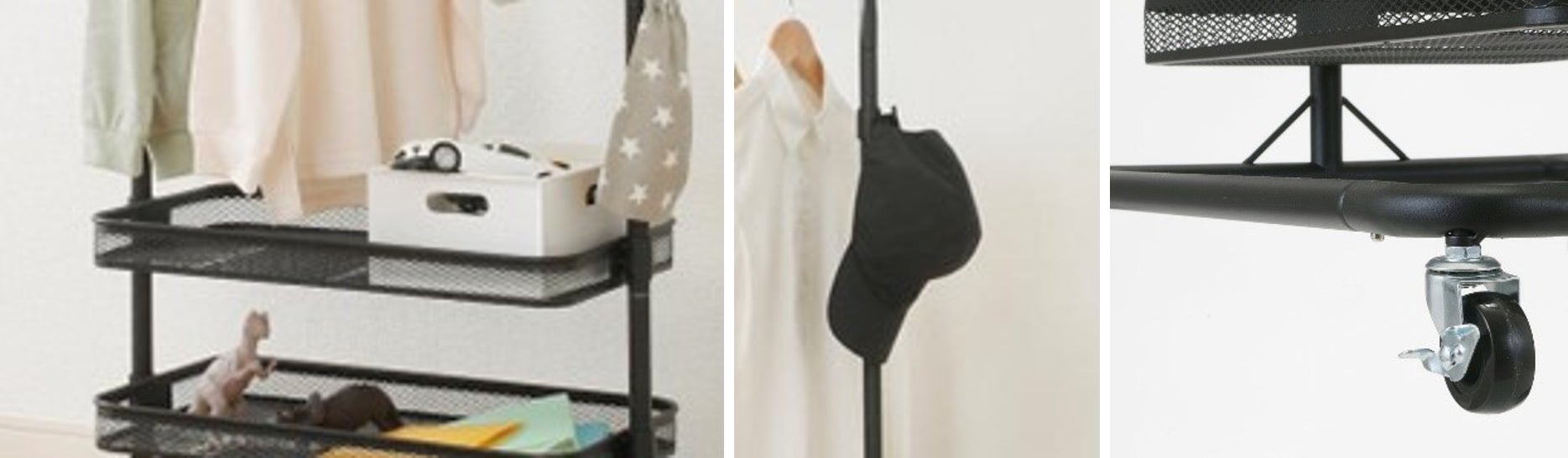洋服からバッグ等の小物まで。普段使いのアイテムがまとめて収納できる「Athena Life 高さが変えられるハンガーワゴン ブラック」を発売
