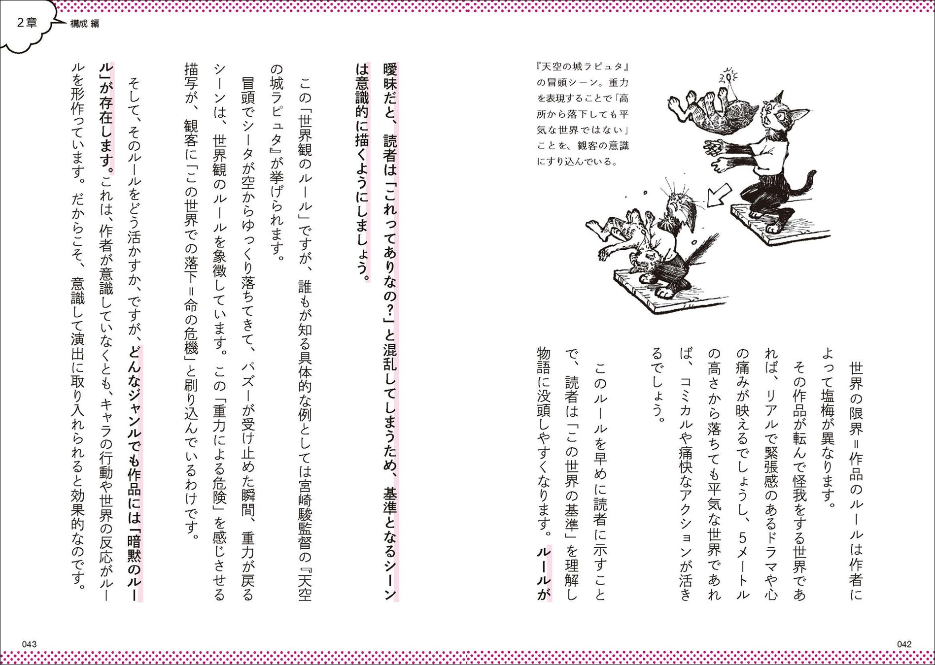 1章:面白いの正体/2章:構成/3章:テーマ/4章:キャラクター/5章:プロット/6章:ネーム/7章:作例