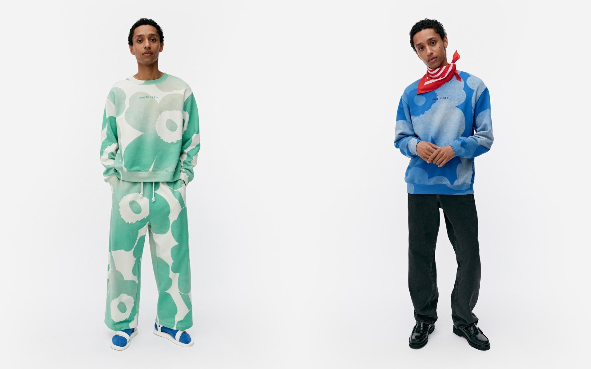 大胆なカラーリングで彩られたウニッコのスウェット、日本人プリントデザイナー石本藤雄が手掛けたケトゥンレイパ(Ketunleipa/コミヤマカタバミ)やオストヤッキ(Ostjakki/ハンティ人)といった個性的なプリントのアイテムは、コレクションに奥行きを与えています。