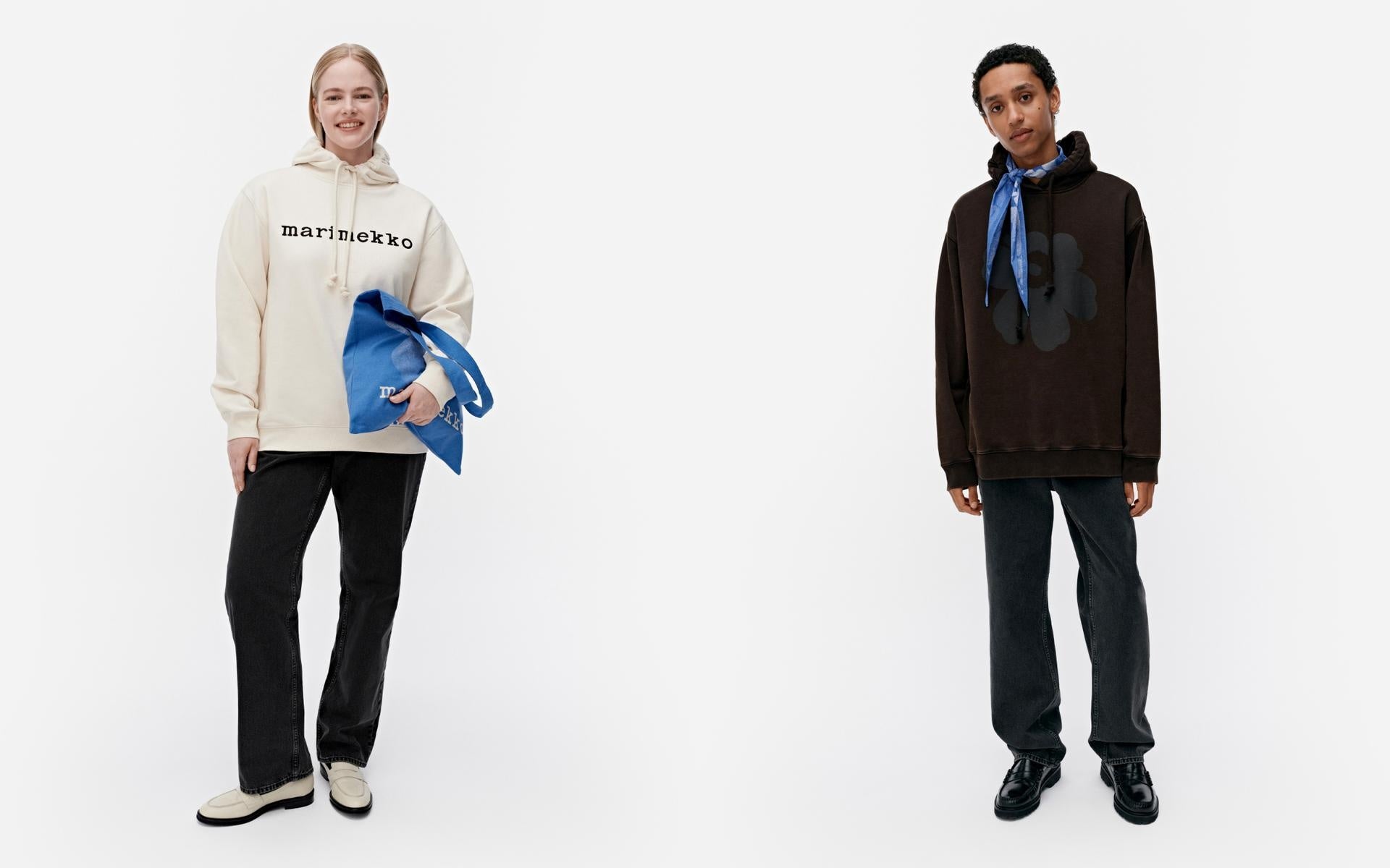 スウェット、フーディ、Tシャツといったワードローブの定番アイテムに、マリメッコのロゴを配置。ミニマルかつ洗練された印象でスタイルを選ばず、取り入れやすいデザインです。