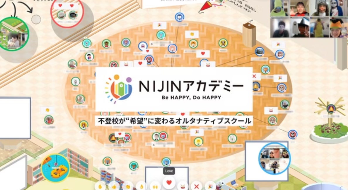 不登校児童生徒数が過去最多34万6482人を記録するなか、2023年9月に開校したNIJINアカデミー本校は、小学1年生から中学3年生を対象に、全国から累計で約480名以上が入学したオンラインの不登校オルタナティブスクールです。メタバース空間を活用した「双方向の学び」や「全国の仲間とのつながり」は、多くの保護者の方から「本来の明るさを取り戻せた」と高い評価を得ています。