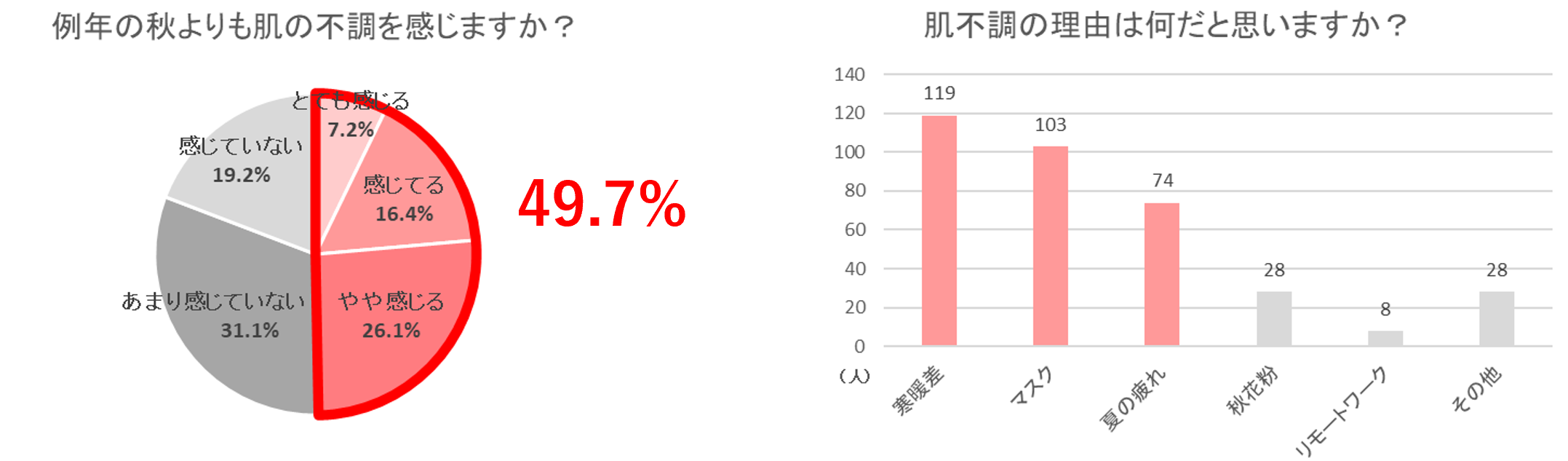 約5割の女性が、昨年の秋よりも「肌不調」を感じていることが判