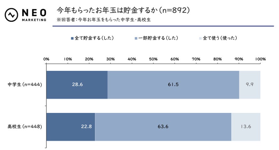 前掲した設問【今年もらったお年玉は貯金するか】の結果通り、中学生・高校生共に「貯金」率が最多に。