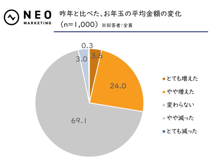 昨年のお年玉と比べた、平均金額の変化をお聞きしました。