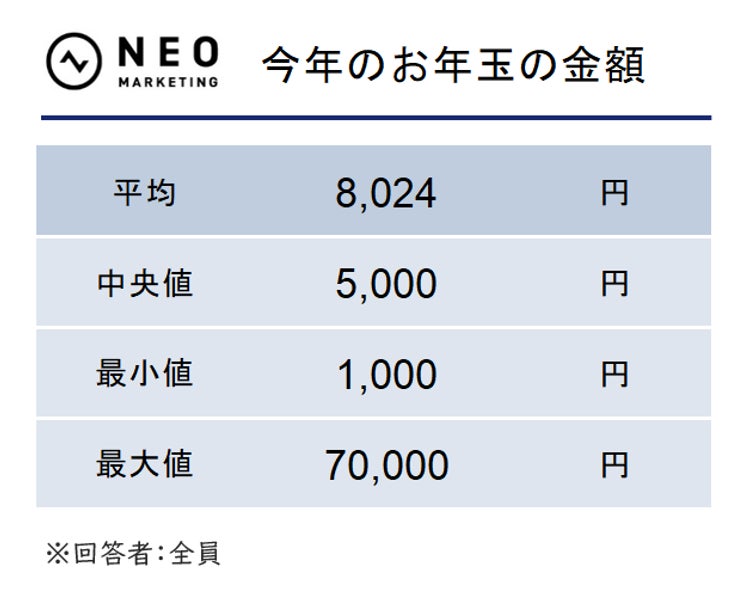 続いて、今年もらったお年玉の平均金額をお聞きしました。