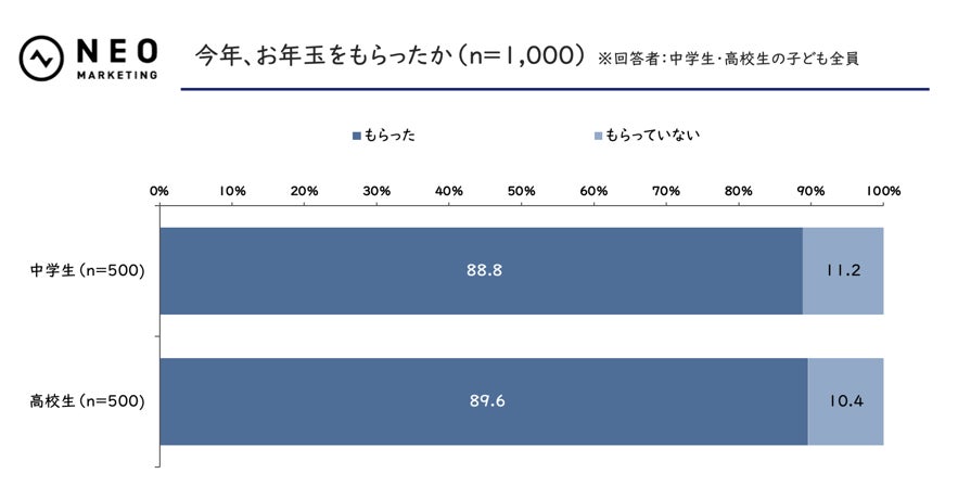 中学生と高校生では年齢差があるものの、お年玉の取得率自体に大きな差は生じませんでした。