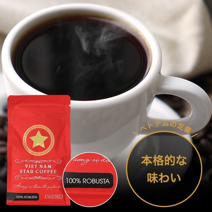 ※ベトナム産コーヒー(ロブスタ種、アラビカ種、ブレンドの各250g×各1袋(粉/中挽き)の計3種・計3袋)を含みます。