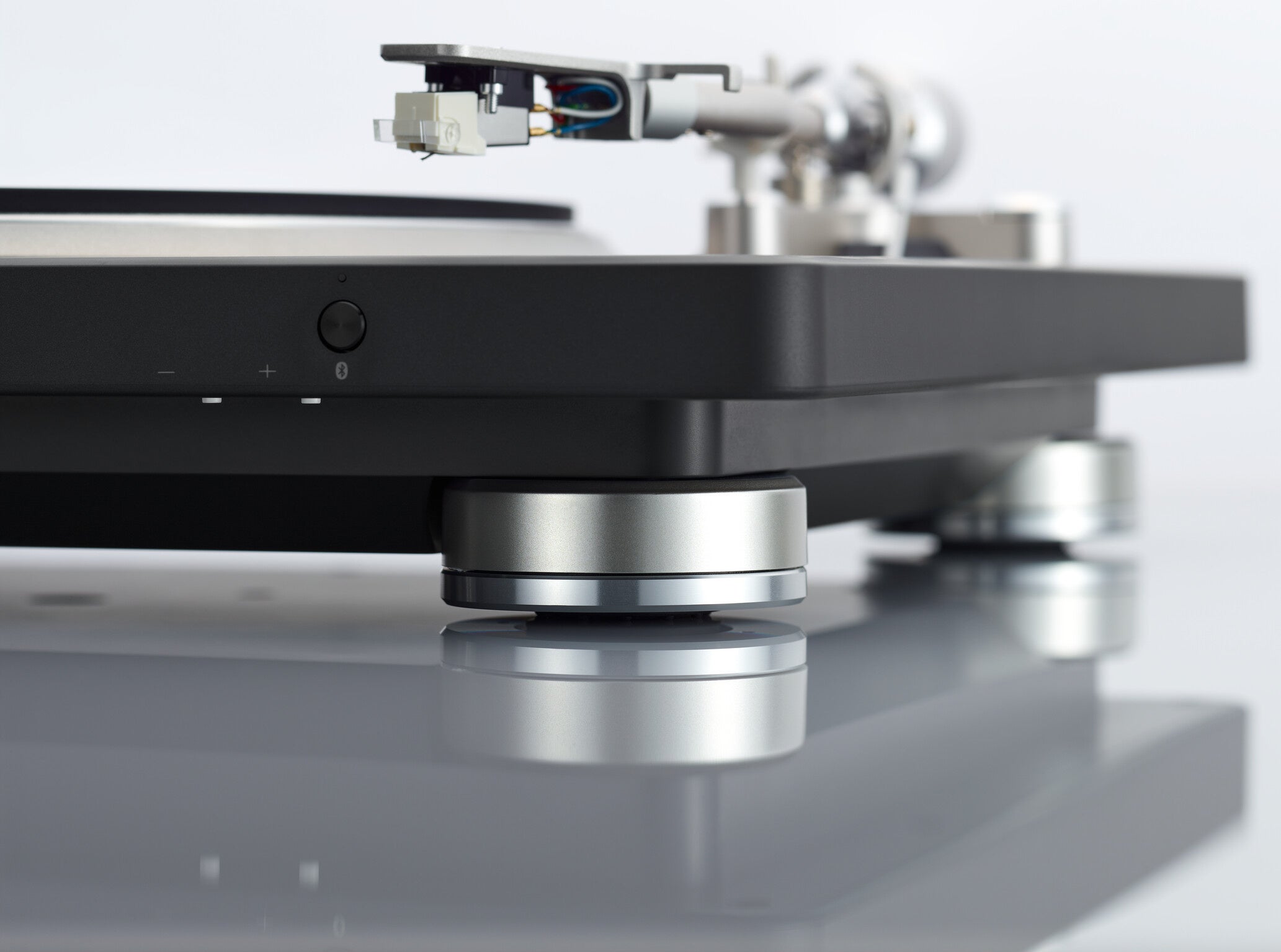 プラッターの駆動方式には、モーターの振動をプラッターから切り離すことのできるベルトドライブ方式を採用しています。回転ムラ(ワウ・フラッター)を最小化するために超高精度で加工された回転軸(スピンドル)、そしてアルミダイキャスト製のプラッターを採用。さらに非接触の光学式センサーによってプラッターの回転速度を常時検出し、その値をマイコンにフィードバックして規定の速度から外れることのないようにモーターの回転速度を精密にコントロールすることにより、安定した回転を保ち、正確なレコード再生を実現します(ワウ・フラッター 0.1%以下)。ターンテーブルの回転数は、33- 1/3回転、45回転および78回転に対応。LP盤やEP盤だけでなく、稀少なSP盤も再生することができます。