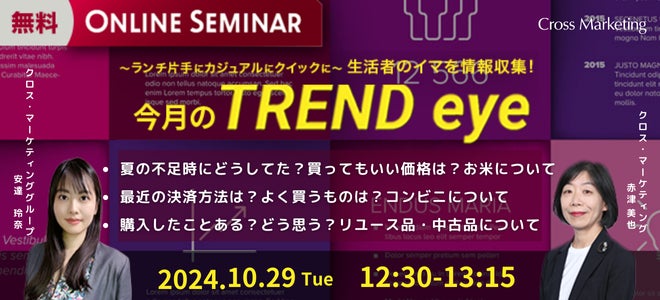 株式会社クロス・マーケティング(本社:東京都新宿区 代表取締役社長兼CEO:五十嵐 幹、以下当社)は、10月29日(火)にセミナーを開催いたします。