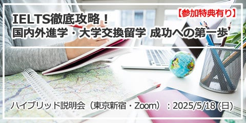 Zenken株式会社(本社:東京都港区、代表取締役社長:林 順之亮、以下 Zenken)と一般財団法人 海外留学推進協会(以下、海外留学推進協会)は5月18日(日)、海外の大学進学や交換留学を目指す高校生および大学生を対象にセミナーを開催します。「IELTS 徹底攻略!国内外進学・大学交換留学 成功への第一歩」と題し、IELTSのスコア構造構成と効果的な学習法を解説します。