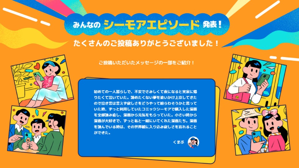 第1弾として人気作品の大量無料キャンペーンやユーザーから募集した“あなたとシーモアとの想い出エピソード”も大公開!