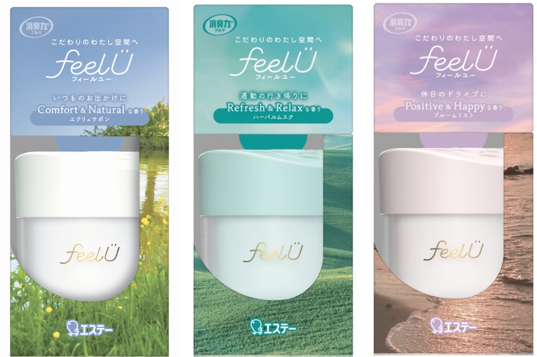 【エステー】様々なドライブシーンでの“なりたい”気持ちに寄りそうカーフレグランス「feelU」から置き型の「消臭力 クルマ用 feelU ゲルタイプ」を新発売