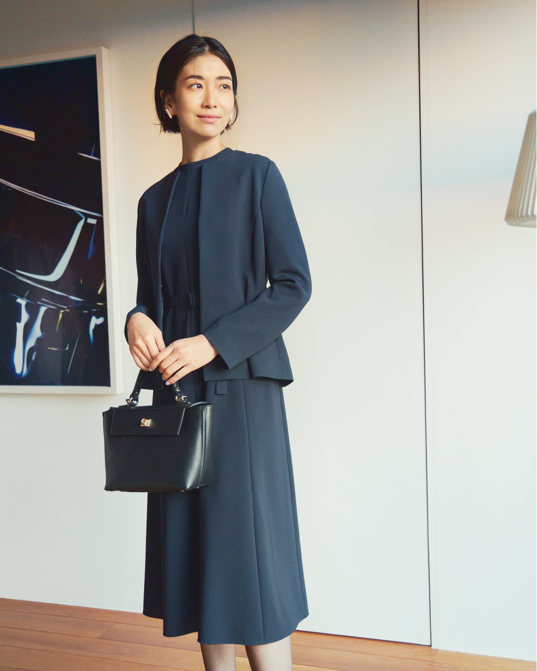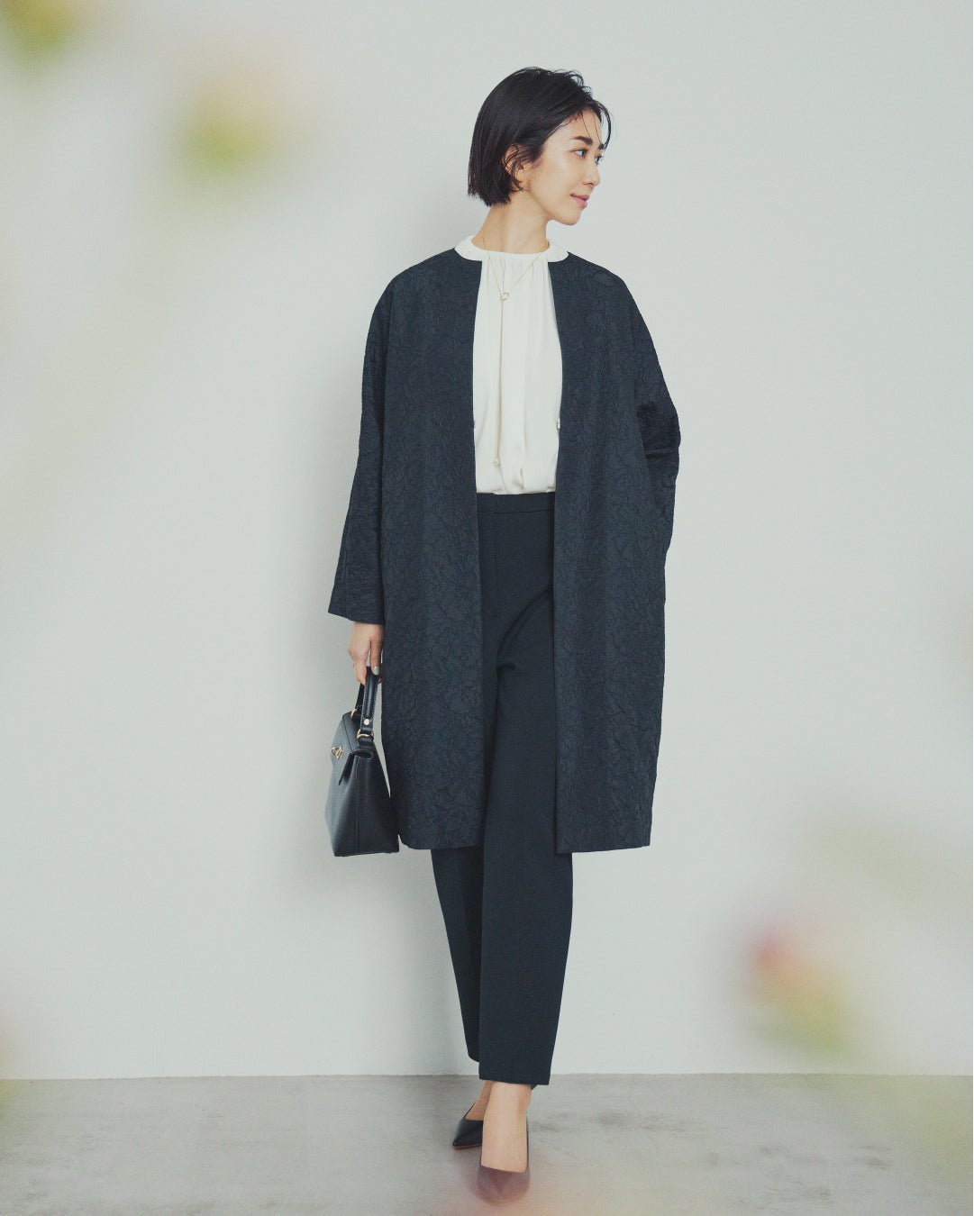 TPOに配慮したフォーマルさはもちろんのこと上品さもおしゃれ感も上乗せしたいママたちのために、定番のツイードセットアップに加えて一年中使えるトリアセ素材や華やかなジャカード素材のアイテムをサイズ豊富にご用意。今シーズンは、セレモニーシーンで迷いがちなアウターもこなれ感のあるジャカードで登場します。その他、インナーに活躍するブラウスのバリエーションもご用意。ハレの日にふさわしい、着回しもスタイルアップも叶う、とっておきの1枚を見つけてください。