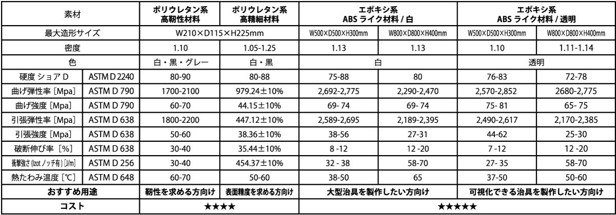 大型治具にも対応、透明材料もラインアップ