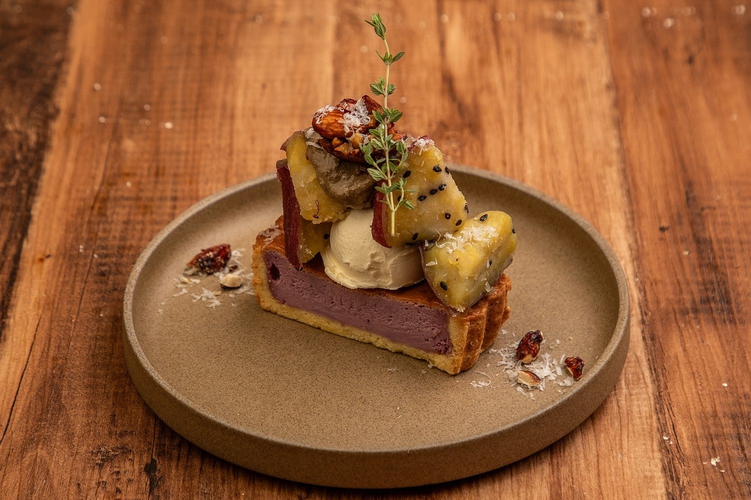 旬のさつま芋・紫芋とチーズを掛け合わせたタルト。「タルトレット」は小さなタルトという意味があり、食後にも食べやすいサイズでご用意。クリームチーズのアイスをトッピングすることで、飽きずにぺろりと食べられてしまう一品です。タルトの生地から自家製で作る、CheeseTableこだわりのスイーツです。