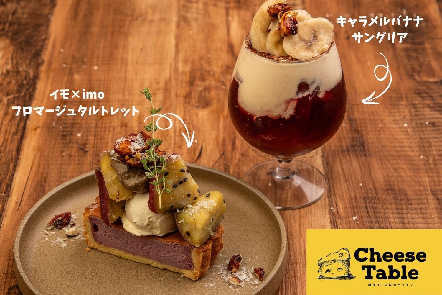 飲食事業やコンテンツ企画サービスを展開する株式会社エスエルディー(本店:東京都港区、代表取締役社長:有村 譲、証券コード:3223、以下「当社」)は、CheeseTable新宿店・池袋店にて、「イモ×imoフロマージュタルトレット」や「キャラメルバナナサングリア」など期間限定6商品の提供をスタートいたしました。
