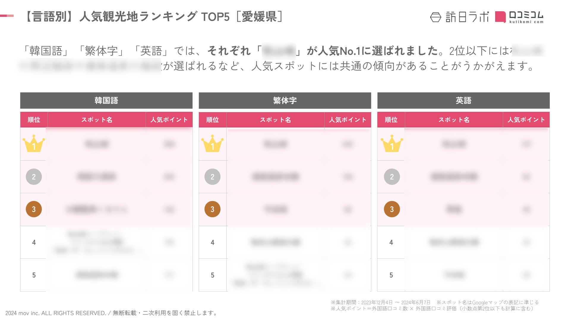 「英語」「繁体字」「韓国語」では、それぞれ異なるスポットがNo.1に選ばれました。