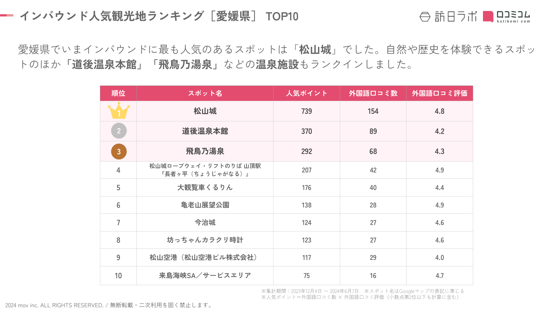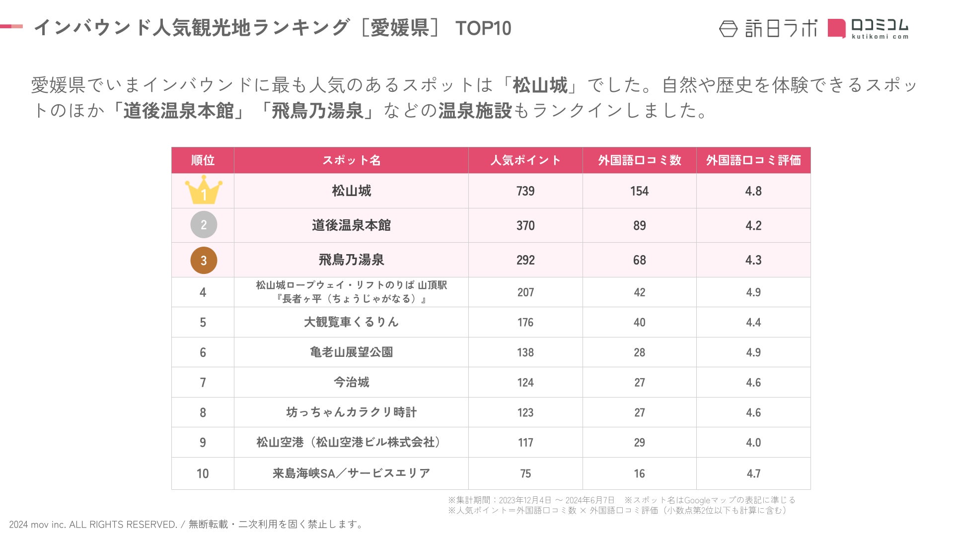 【独自調査】2024最新:外国人に人気の観光スポットランキング[愛媛県編]1位は2年連続で「松山城」!| インバウンド人気観光地ランキング #インバウンドMEO