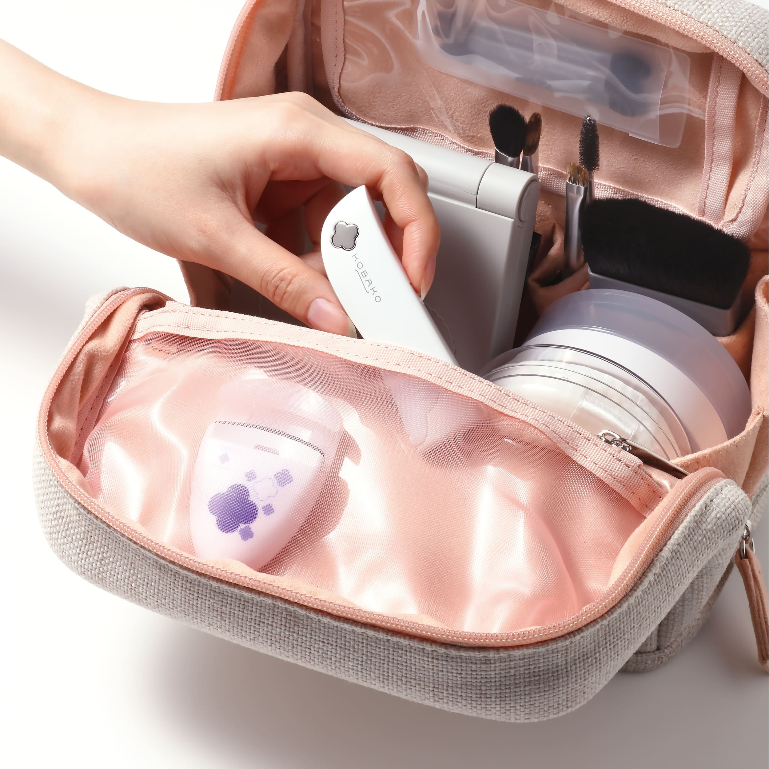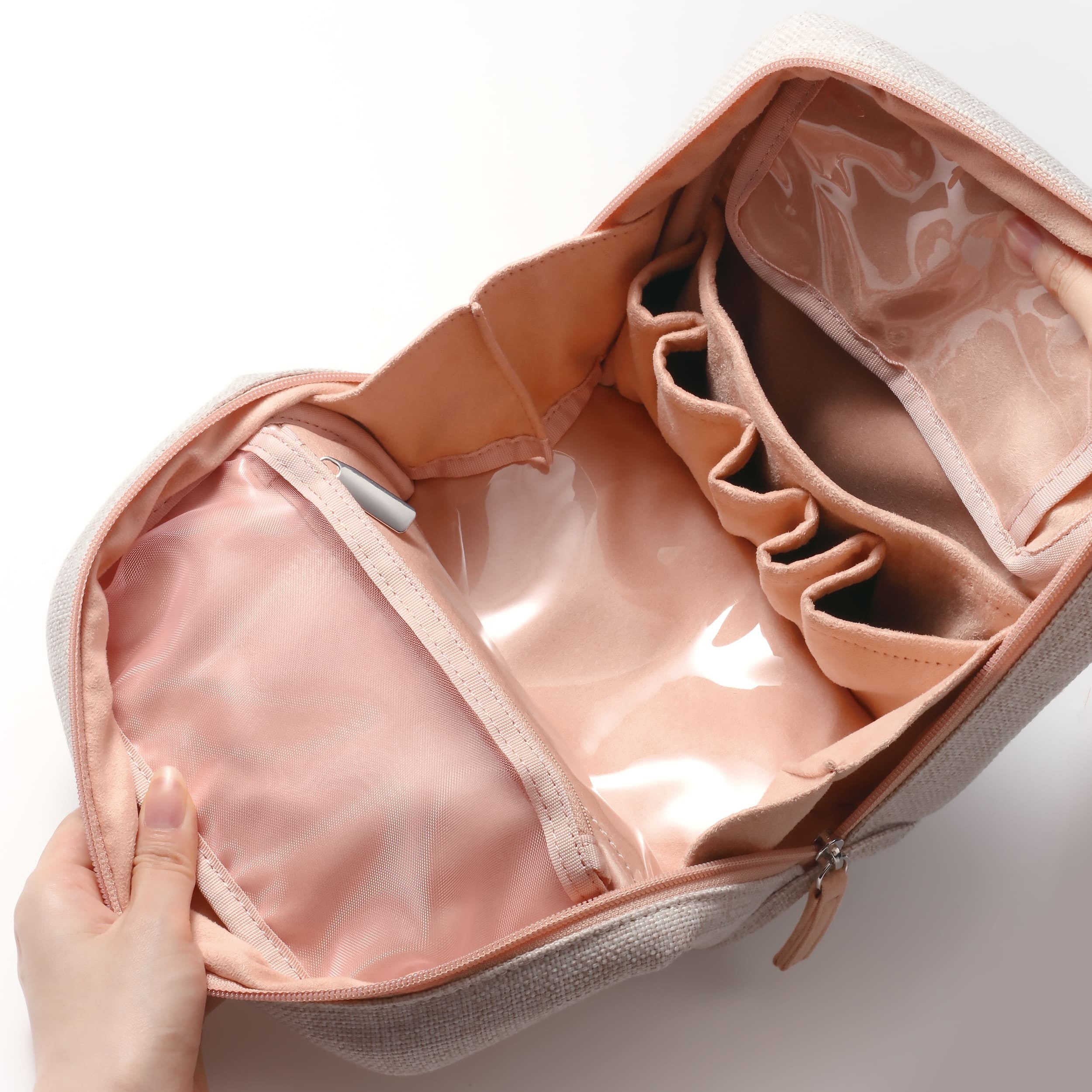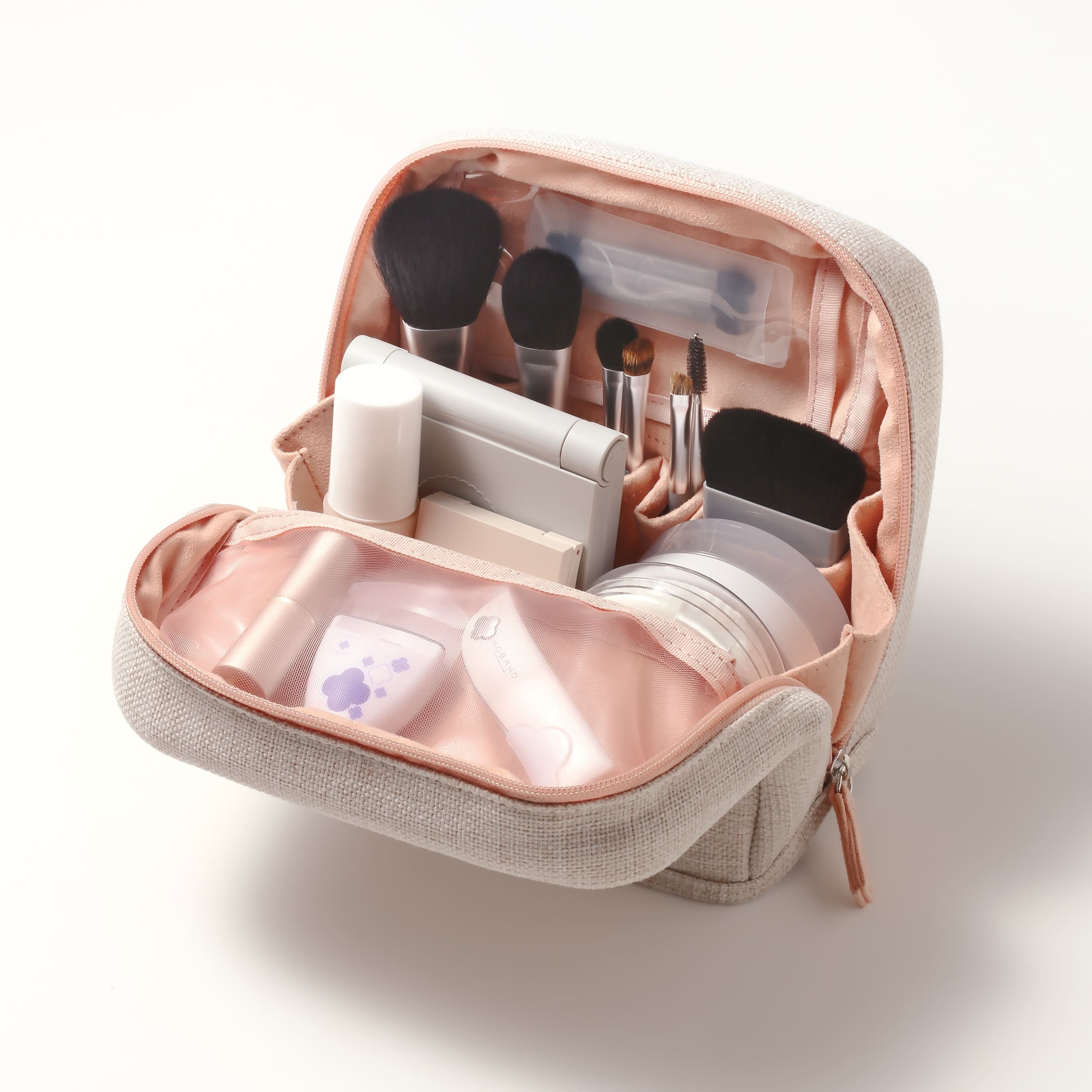 機能性を追求したポーチは正面部分が折りたたみ可能でブラシポケットやメッシュポーチなど収納もたっぷり。