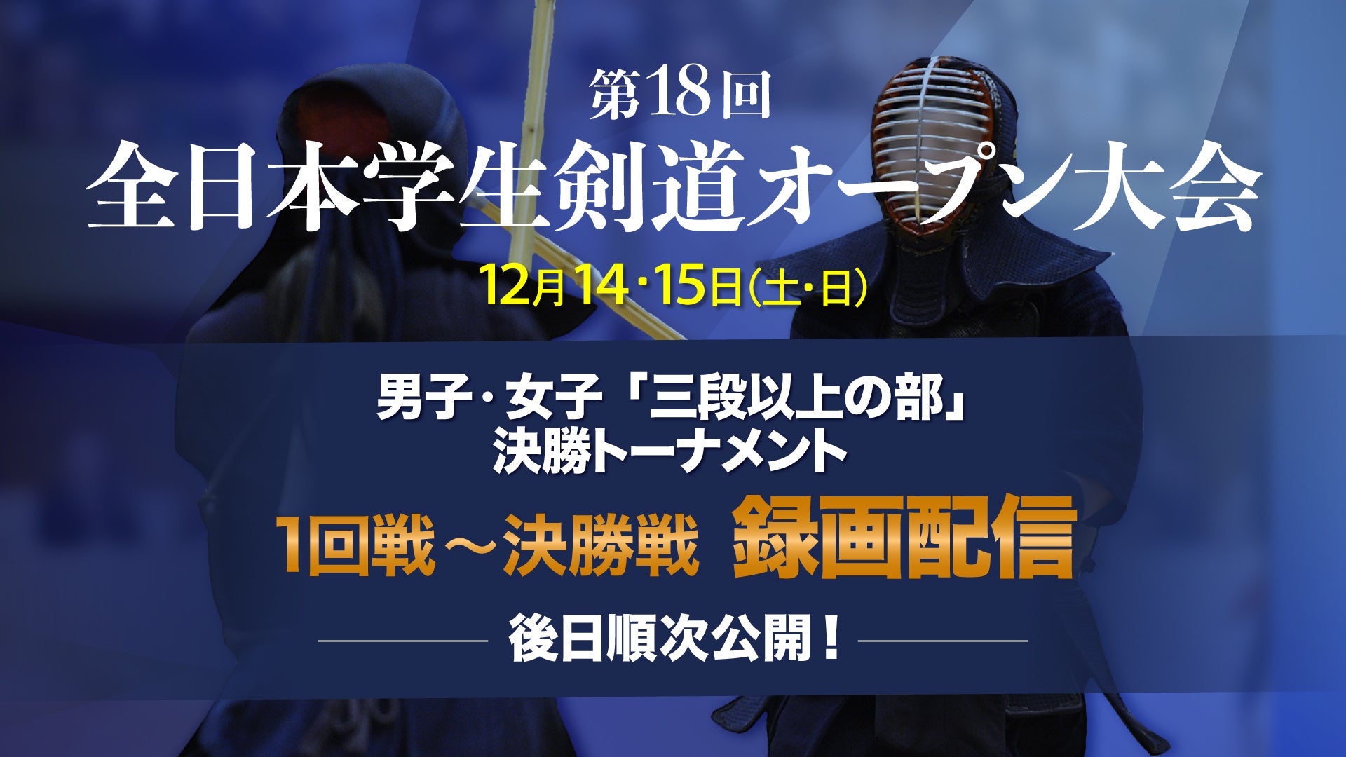 第18回全日本学生剣道オープン大会(全日本学生剣道連盟主催、毎日新聞社など後援、NAX JAPAN、JPロジスティクス協賛)が、12月14、15日両日、宮城県仙台市のカメイアリーナ仙台で開催されます。毎日新聞社は、ニュースサイト「毎日新聞デジタル」内に大会の特設サイト(https://mainichi.jp/kendolive/open/k2024)を開設。大会終了後には、三段以上の部の男女決勝トーナメントの熱戦を無料でアーカイブ配信します。