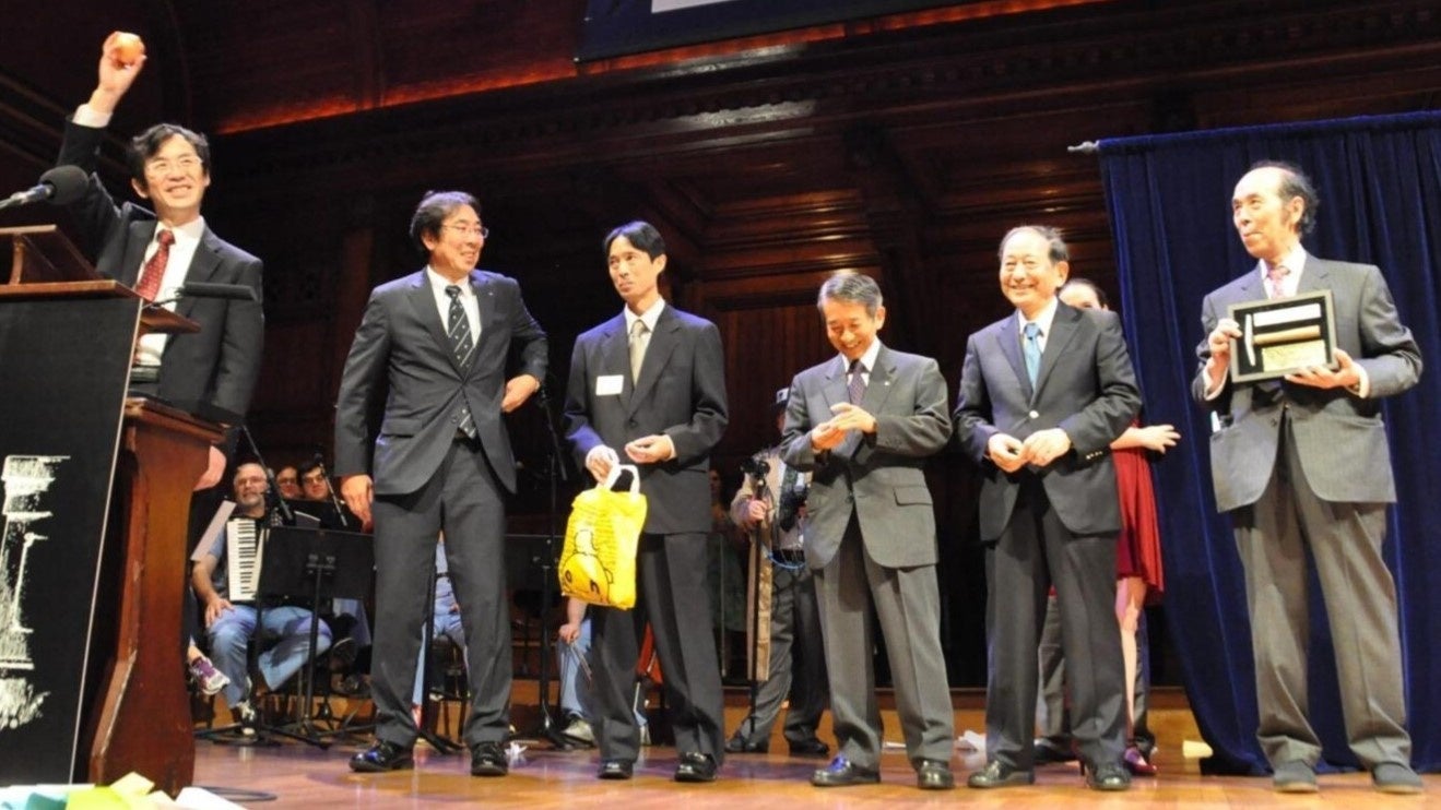 2002 年の「Nature」掲載論⽂が評価され、イグ・ノーベル化学賞を受賞。涙がでる⾟み成分を⽣成するきっかけとなる催涙因⼦合成酵素の発⾒は「タマネギが⼈を泣かせる⽣化学的なプロセスは、科学者が考えていたより複雑であることを、明らかにした」と評価。 |