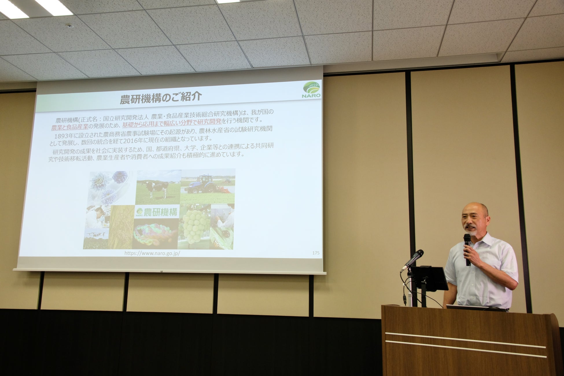 鶴氏は、農業データ連携基盤「WAGRI」の運営と実践的な課題を説明されました。WAGRIは、全国の農業関連データを集めるプラットフォームで、農業基本計画におけるデータ駆動型農業の中核インフラと位置付けられています。講演では、センサーデータ、営農記録、気象・衛星データなどを連携し、利活用可能な形に整備する仕組みを紹介。また、民間企業やアプリケーションとの連携事例から、現場でのAI導入や分析活用の可能性と課題を提示。さらに、データ標準化・可搬性・データ提供ルール整備など、行政・研究・産業をまたぐ連携型体制構築の重要性も強調されました。