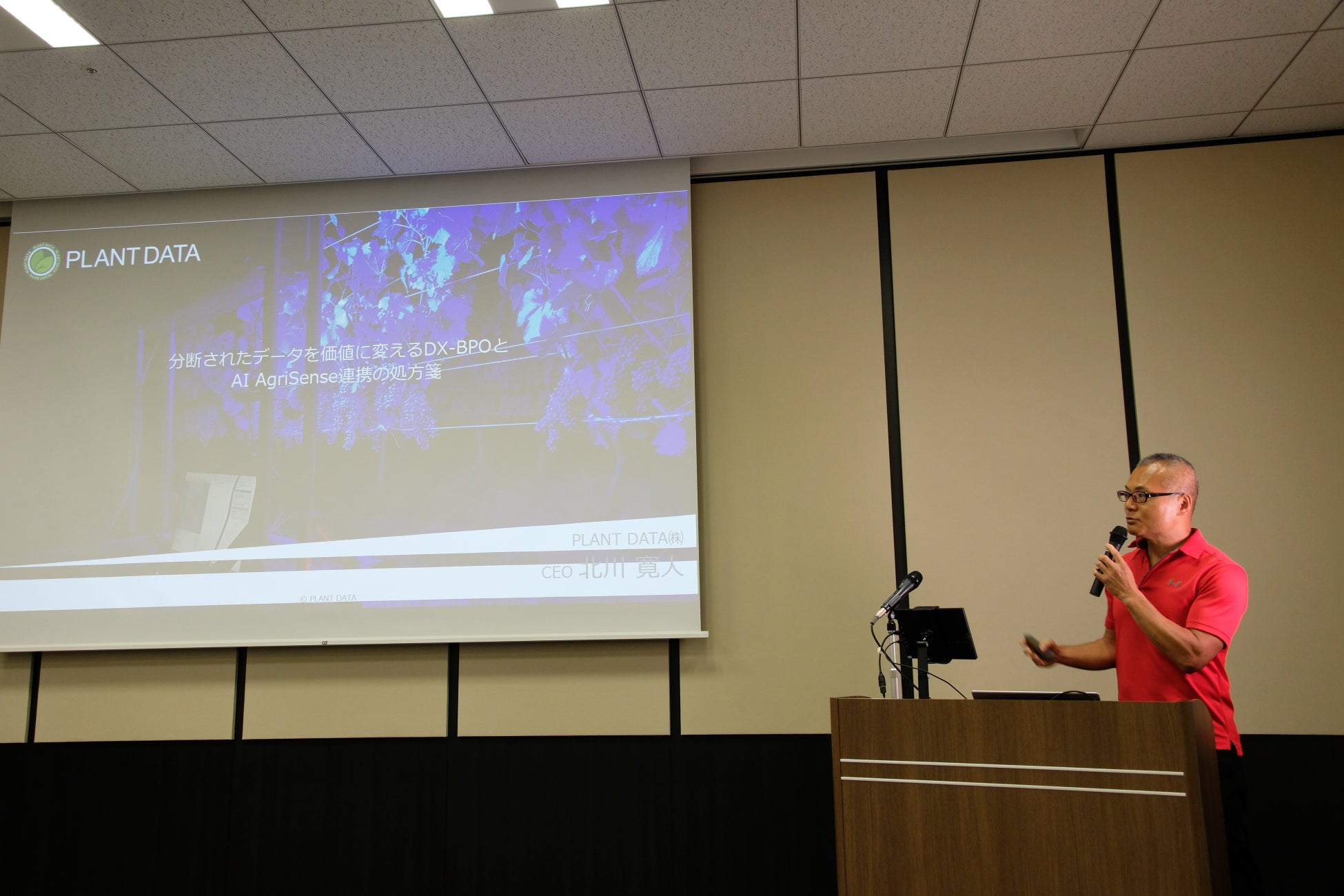 北川氏は、農業データがあちこちに分断されてしまっている現状を問題視し、それを価値に変える手段としてDXBPO(ビジネスプロセスアウトソーシング)とAI AgriSenseの連携モデルを提案しました。具体的には、営農記録・圃場データ・流通データなどをDXBPO事業者が統合・整形し、AIによる判断支援に繋げるスキームを紹介。データ精度・ICTリテラシー・インフラ制約などの課題に対して、部分的なアウトソーシングとAI補完を組み合わせる処方箋を示しました。農業のバリューチェーン全体を視野に入れた連携型DXモデルの可能性を語りました。