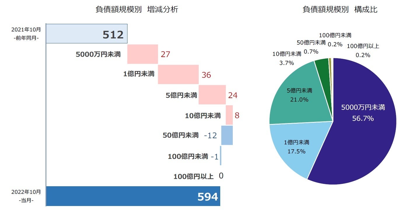 倒産件数は594件、6カ月連続で前年同月比増加 負債総額は806億2600万円、2022年5月以来5カ月ぶりの前年同月比減少