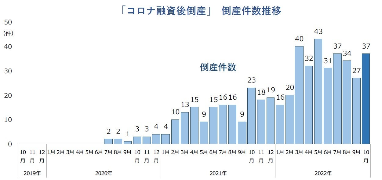 コロナ融資後倒産:2022年10月は37件発生 コロナ融資損失総額は推計294億円