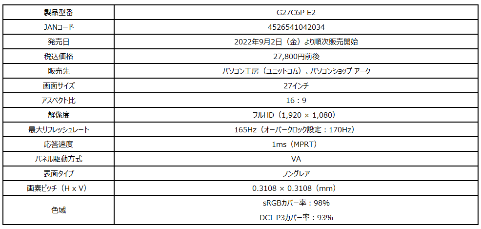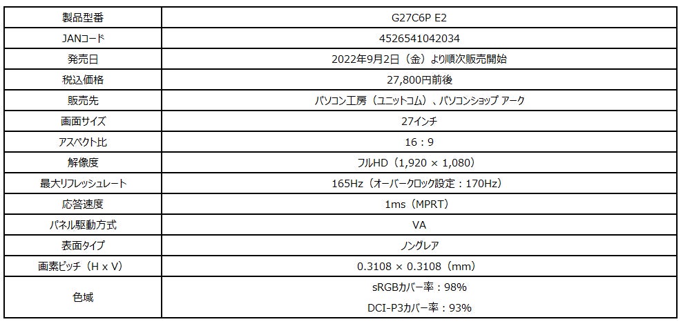~2022年9月2日よりパソコン工房(ユニットコム)、パソコンショップ アークにて順次販売開始~
