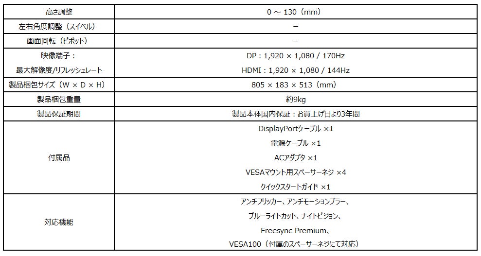 FPSゲームなど激しい動きのゲームでも滑らかな映像を残像感無く表示出来ます。