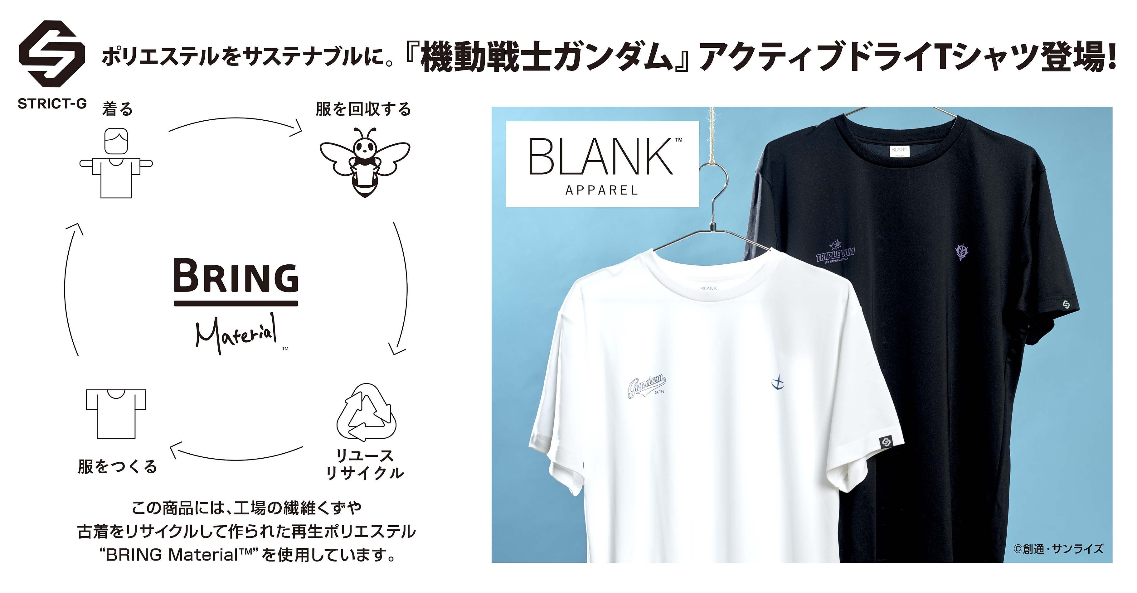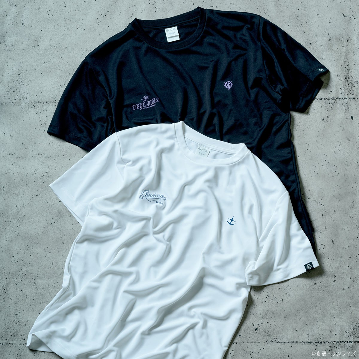 「BRING Material™(再生ポリエステル素材)」を使用した『機動戦士ガンダム』アクティブドライTシャツが登場!フロントにそれぞれ、地球連邦軍のエンブレムとガンダムカレッジロゴ、ジオン軍のエンブレムとTRIPLE DOMロゴ、をさりげなくスポーティにデザイン、表地は天竺、裏は肌離れが良い生地感に仕上げた、アクティブシーンに最適なドライTシャツです。