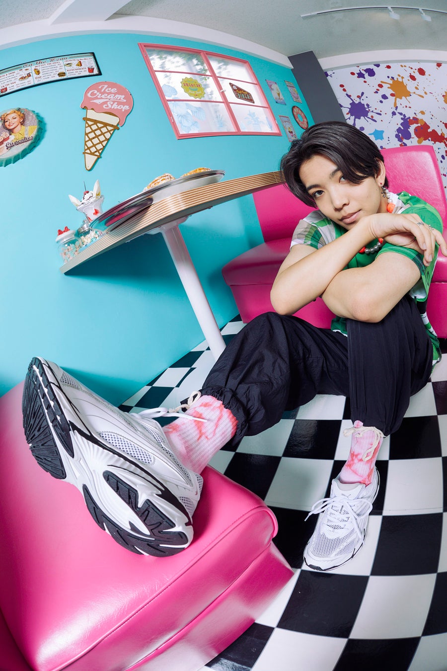 東京のスニーカーカルチャーを世界に向けて発信し 続けるショップatmosより、新たな業態となる女性の為のスポーツミックスス タイルを提案するコンセプトショップ。 <Pinks, Go ahead : レディーたち、前に進もうよ。毎日をポジティブに⼤好きな⾃分の ために。体を動かそうよ。 ⾳楽を楽しもうよ。アートなことしようよ。ファッションを楽しもうよ。新しいこと発