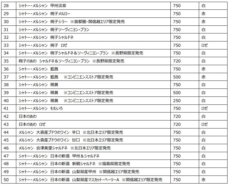 (「シャトー・メルシャン」「日本のあわ」他)全50品