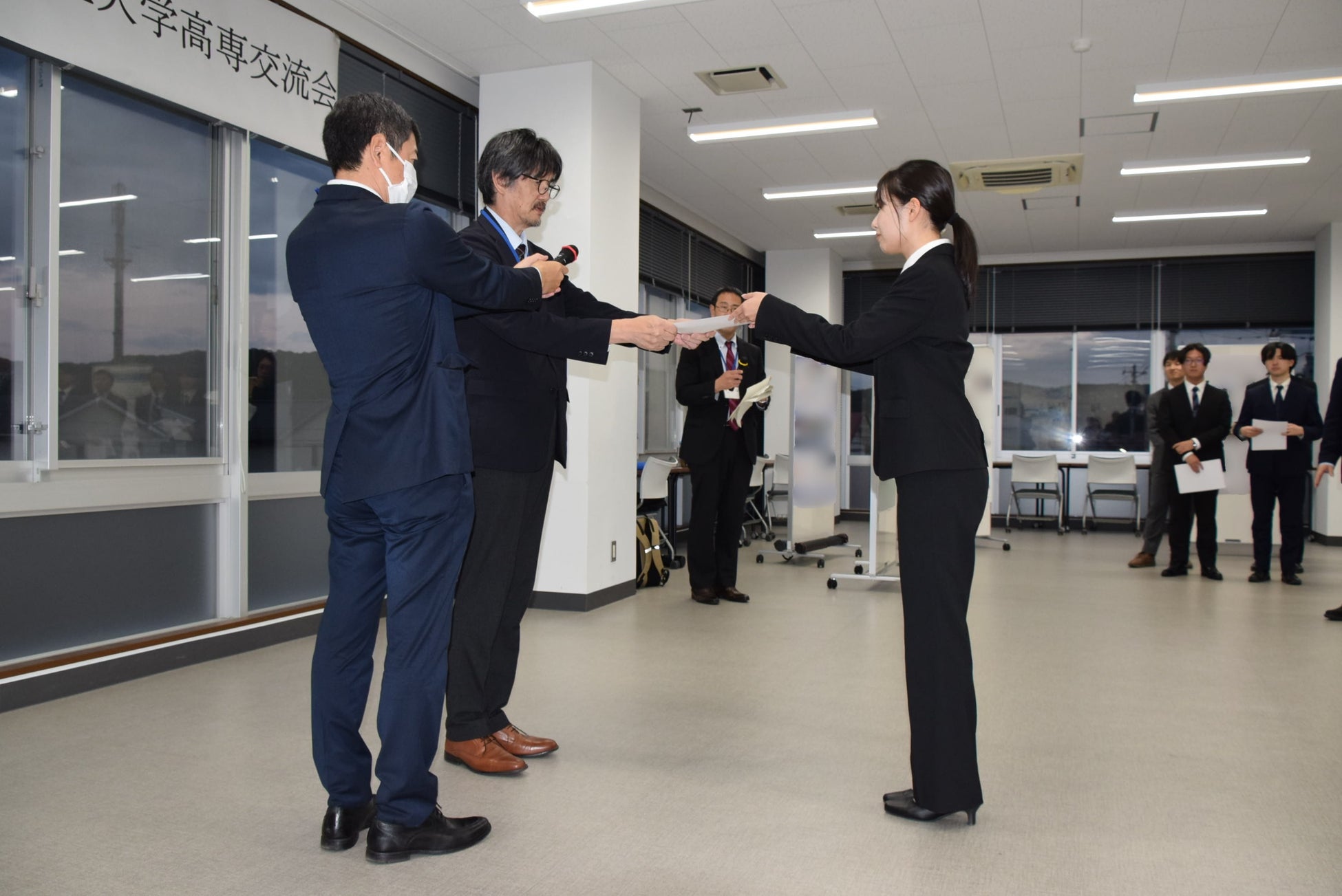 交流会の締めくくりには、学生による優れた発表に対し表彰が行われました。表彰では最優秀賞1名、優秀賞4名が選ばれ、学生たちの努力と成果が称えられました。
