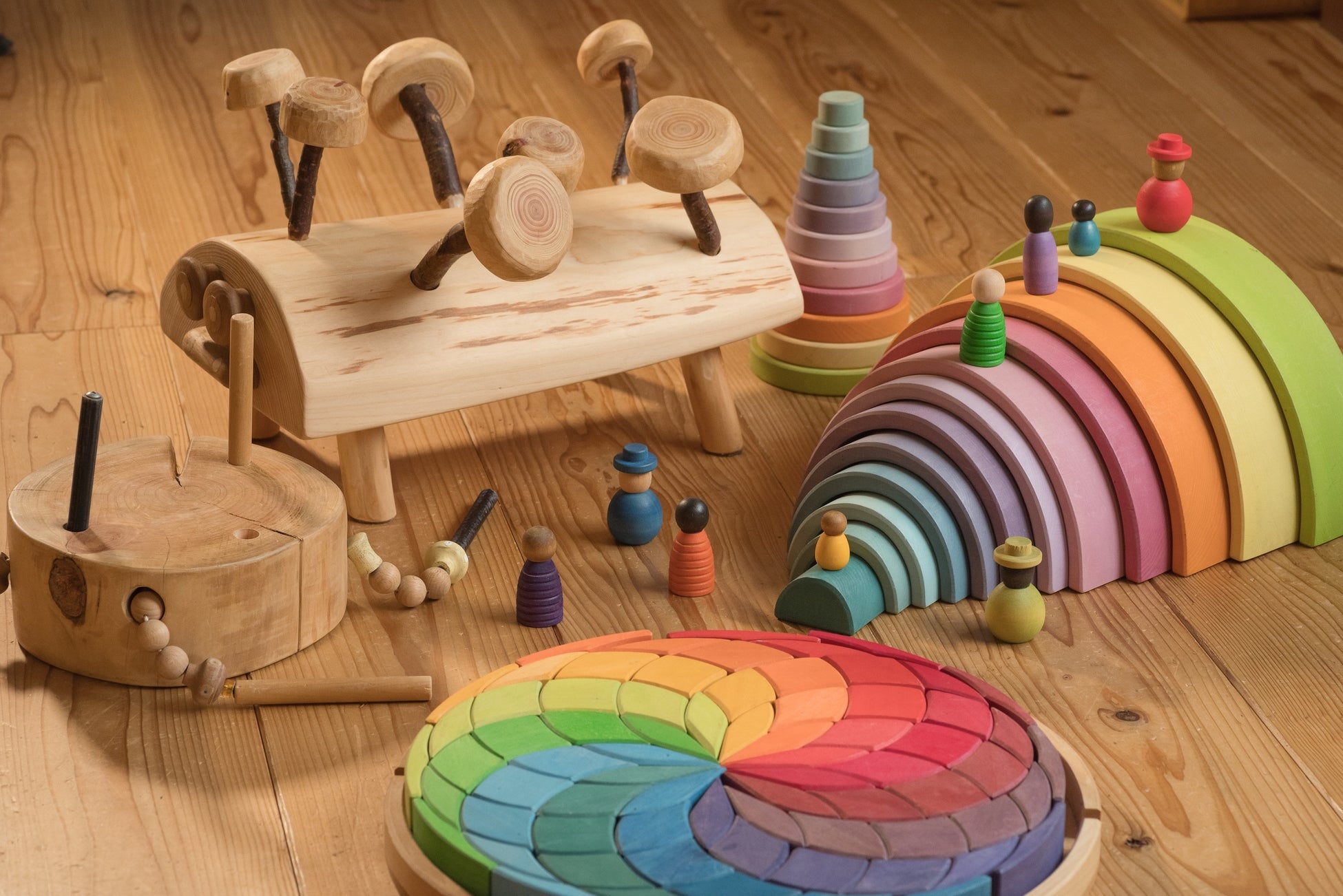 自由な発想で、何通りもの遊び方ができる木のおもちゃ。海外で作られたものや国内の木工作家のおもちゃまで30種類以上の木のおもちゃで遊べます。