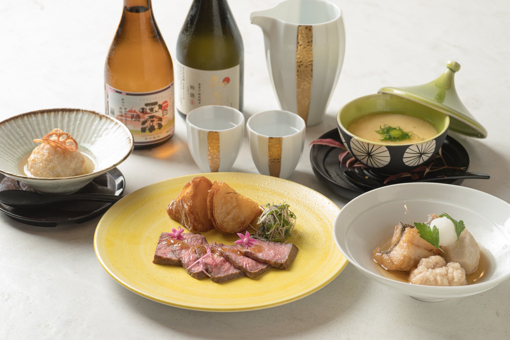 旬の味を大切にする料理は、伊豆のろっぽう野菜や三島馬鈴薯、箱根西麓牛、沼津港に水揚げされる魚が主役。お米は御殿場こしひかりを使用し、素材が持つ滋味をとことん引き出した月替わりの料理です。