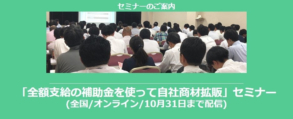「全額支給の補助金を使って自社商材拡販」セミナー配信開始(全国/オンライン/有料会員限定/10月31日まで配信)