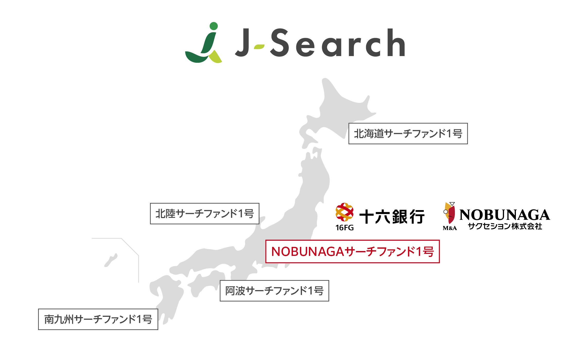 株式会社日本M&Aセンターホールディングス(以下、当社 / 本社:東京都千代田区 / 代表取締役社長:三宅 卓) の連結子会社である株式会社日本サーチファンド(以下、J-Search / 本社:東京都千代田区 / 代表取締役 / 大槻 昌彦 / https://j-search.co.jp)は、株式会社十六フィナンシャルグループ(本社:岐阜県岐阜市 / 代表取締役社長:池田 直樹)の株式会社十六銀行(以下、十六銀行 / 本社:岐阜県岐阜市 / 取締役頭取:石黒 明秀)、NOBUNAGAサクセション株式会社(以下、NOBUNAGAサクセション / 本社:岐阜県岐阜市 / 代表取締役社長:角 知篤)と共同で「NOBUNAGAサーチファンド」を設立することをお知らせいたします。