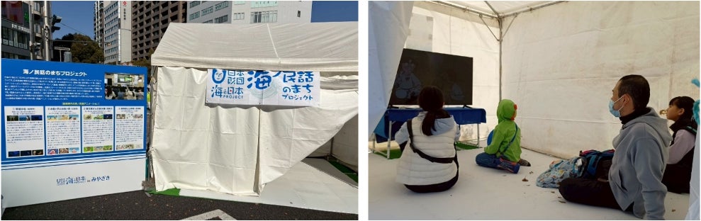 宮崎の海に古くから語り継がれてきた歴史や独自の文化、そして先人たちが自然と共に生きる中で遺した貴重な「教訓」を、現代の子どもたちに分かりやすく伝えることを目的としてつくられた海ノ民話アニメーション。この上映を通じて、来場者は地元の海の豊かさや歴史、文化を再発見し、未来へと繋いでいくことの大切さを共有するブースとなりました。
